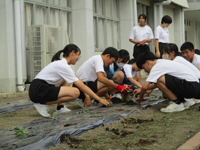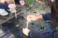 16日(木)2学年はふるさと農園活動で第1弾のジャガイモ栽培につづき、ブロッコリーの苗を植えました。