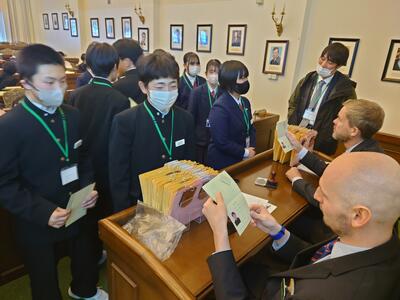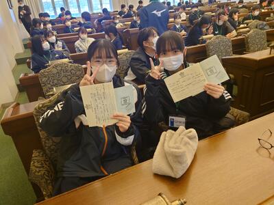 2年生総合的な学習で各事業所へマスク配布を行いました。