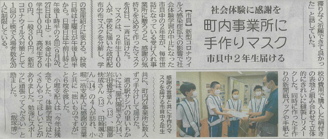 7月21日(火)総合的な学習で各事業所へマスク配布