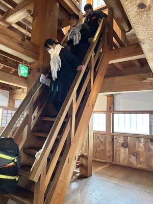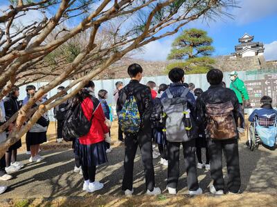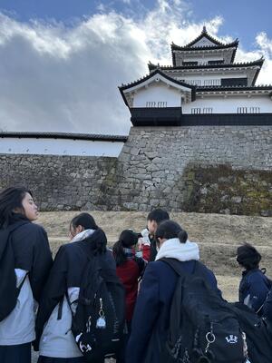 雲1つない青空の下、小峰城が本当に素晴らしいです!クラスごとに、小峰城、三重櫓、歴史館を回ります。
