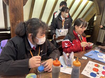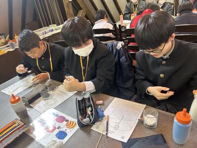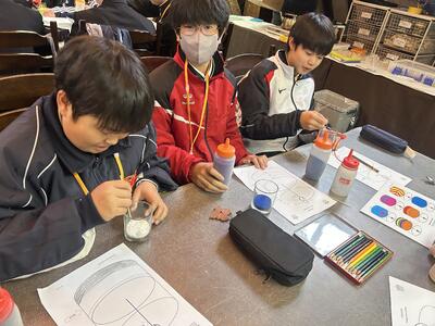 デザインを考え、カラフルな砂を入れる作業に入りました!