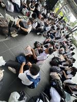 とてもいい天気で、全生徒しっかりと歴史に触れることができました。