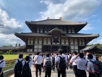 どの生徒も、奈良の大仏の迫力に感動していました。また、奈良公園の鹿たちとも触れ合ってきました。