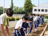 総合的な学習の時間に「ふるさと学習」の一貫でさつまの苗をうえます。