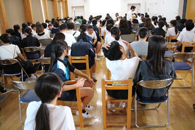 (水)はあいにくの雨でしたので校庭に避難をすることはできませんでしたが、14:00に体育館に集合し、避難訓練の講話及びお迎え訓練を実施しました。小中合同で行われたのは今回が初めてのことです。色々とご迷惑をお掛けしましたが、保護者様のご協力たいへんありがとうございました。
