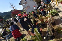 竹を切って梅・松・南天・ゆずりはをさしたり、竹を綱で束ねて紅白のテープで巻いたりと、貴重な体験をすることができました。限られた時間の中ではありましたが、地域のみなさんのご協力もあり、すてきな門松を完成させることができました。