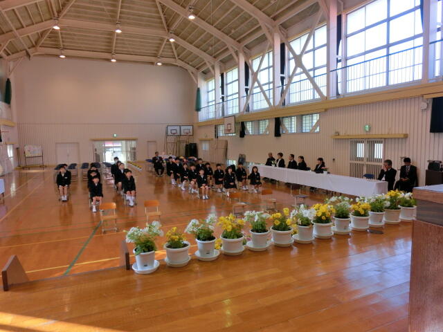 入学式は今年度より4月9日(始業式の次の日)で,在校生全員で新1年生を迎えます。かわいい1年生が登校してくる時間まで,在校生も少し式の練習をして備えました。心は職員も児童もドキドキでした。入学式は元気な1年生の返事や笑顔を見ることができました。6年生の代表児童のあいさつは,「旭小学校児童30名がすてきな仲間になる」,そんな言葉が綴られていました。今年度もよい1年になると思いました。保護者や地域のみなさんと学校が,一丸となってがんばっていきます。