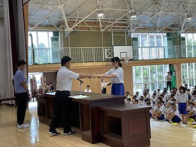 今日の朝会は表彰が行われました。