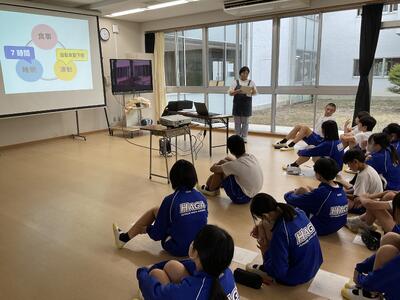 心身ともに健康になるために積極的に摂取したい栄養や見直したい生活習慣について考え、夏休みも生活習慣を乱さないように過ごすための目標を立てることができました。