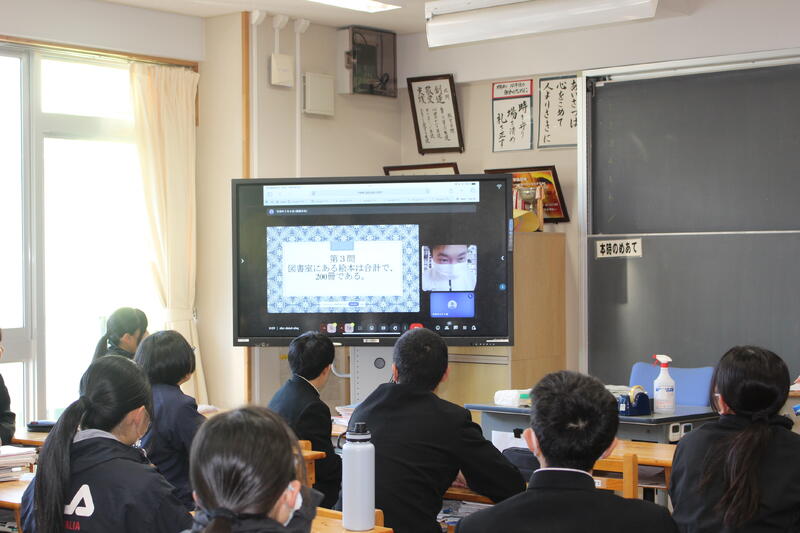 図書委員会主催の読書集会がリモートで行われました。図書クイズが出題され、優勝した1年4組には図書委員長から賞品が手渡されました。おめでとうございます! 読書は心の糧です。良書をたくさん読みましょう!!