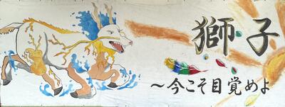 体育祭のスローガンが決まりました。早速スローガンを描き込みます。