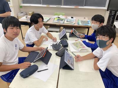 ↑3年生男子部員。アイデアを考えたり、イラストを描いたりしています!