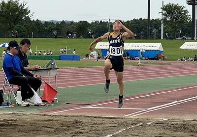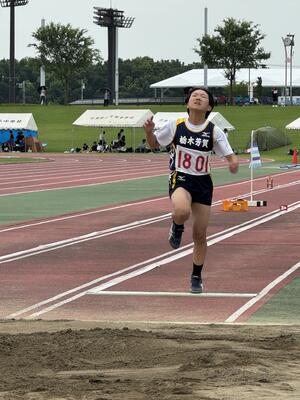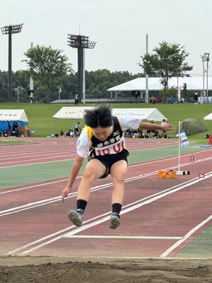 2年男子走り幅跳で、柿岡茉さんが、5m40cmを跳び2位に入賞しました。素晴らしい活躍ですね。