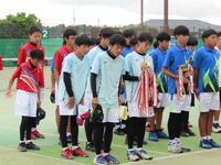 郡市新人ソフトテニス大会 男子団体戦が、与能テニスコートで行われました。