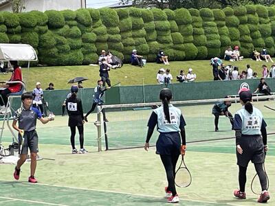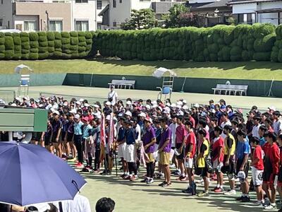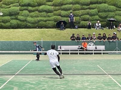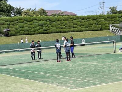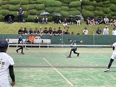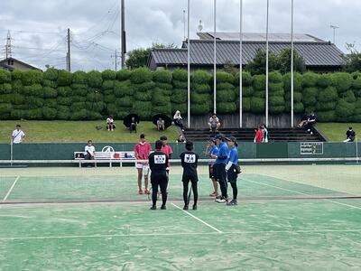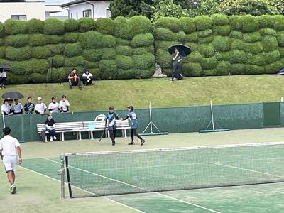 昨夜から降り続いていた雨が上がるのを待って、R5郡市総体ソフトテニス大会男子団体が、行われました。