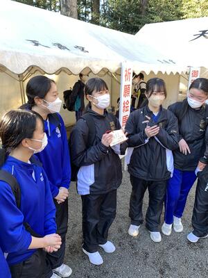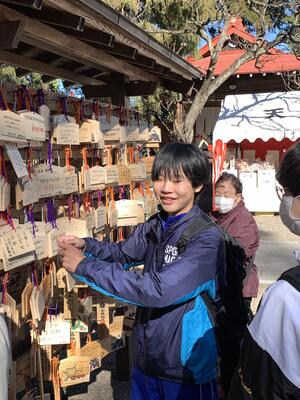 1月4日(木)今日は新年初の練習です。練習の後、天満宮にお参りして絵馬に目標を書き、今年の弓道部の活躍を祈願しました。