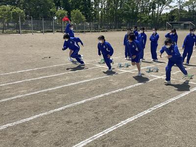 スターティングブロックを使ってのスタートの練習を行なっていました。