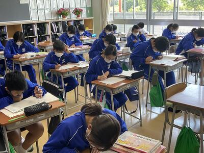 本日は、郡市総合体育大会です。試合がない生徒たちは、選手の健闘を祈りつつ、学校で学習をしています。
