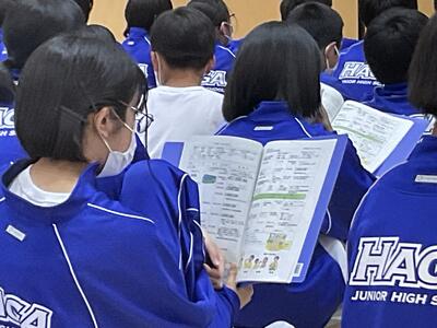 その後、学年主任の丸岡先生からお話を頂いきました。