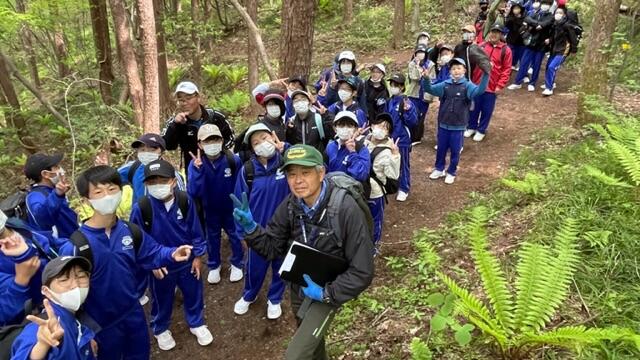 七井先生が一番後ろ(殿)からサポートしています。しっかり安全確認しています。