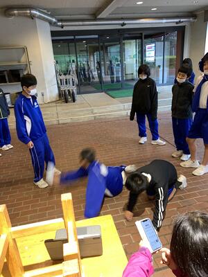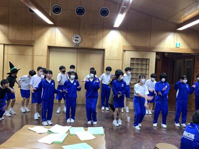 各学級で人間知恵の輪や、黙って誕生日順に並ぶなどの活動を行なっていました。