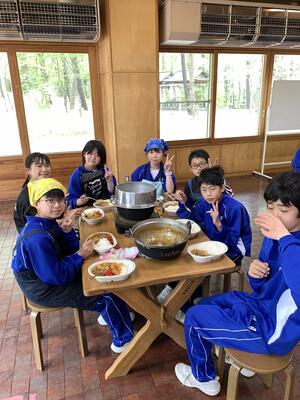 2組は英語の授業です。「食べられるかな?」の質問です。