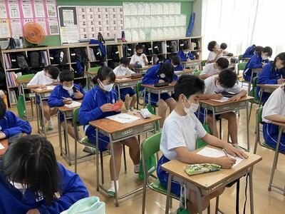 本日は、郡市総合体育大会です。試合がない生徒たちは、選手の健闘を祈りつつ、学校で学習をしています。