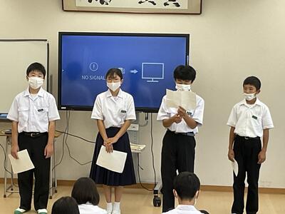 1年生 7月20日(木) 1学期の反省 代表挨拶