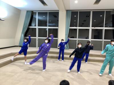 夕食を食べています。スタンツの練習がハードだったのか、食べる勢いがあります。