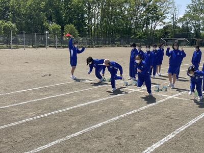 スターティングブロックを使ってのスタートの練習を行なっていました。
