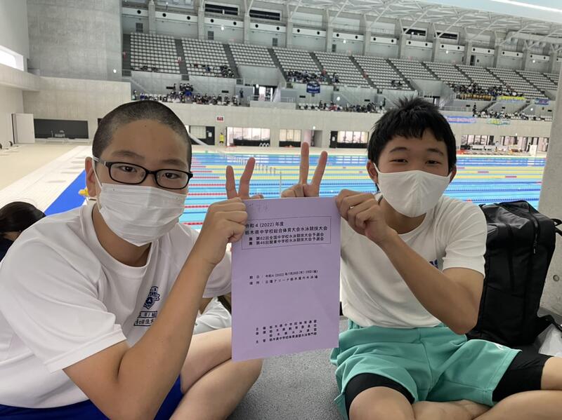 本日より、県総体水泳大会が始まりました。結果をご報告いたします。