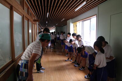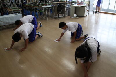 日頃の清掃活動で膝をついて雑巾がけをするなど一生懸命に取り組んだり、