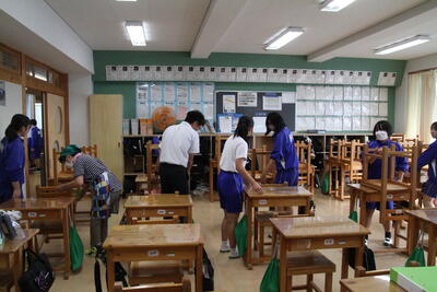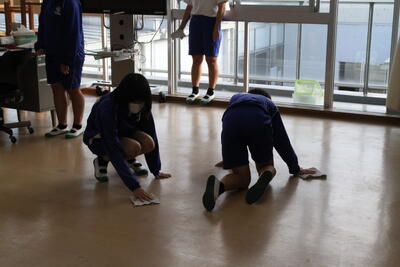 教室も廊下も膝をついての雑巾がけがあたりまえになってますね。すばらしい。