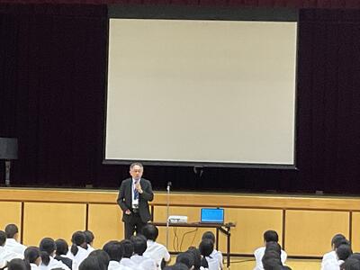 本日の朝会では、学習指導助手の大関勲先生の新任式と、校長講話が行われました。