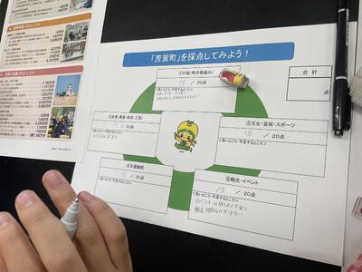 最初に今の芳賀町の採点を行い、その後町に必要なことについてグループワークを行いました。