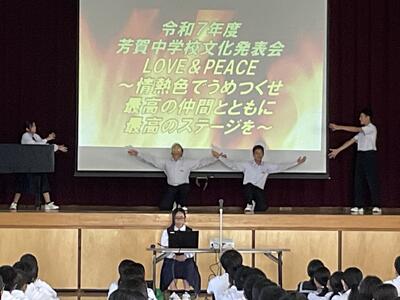 本日の朝会は生徒会役員による「文化発表会」についての説明でした。