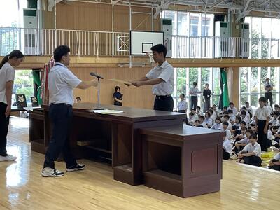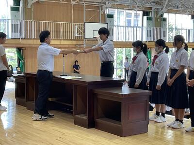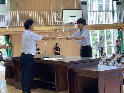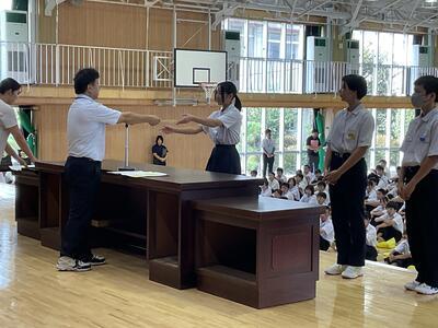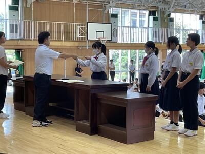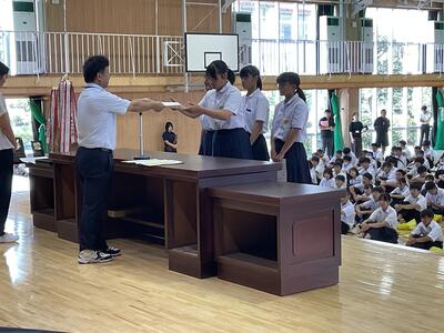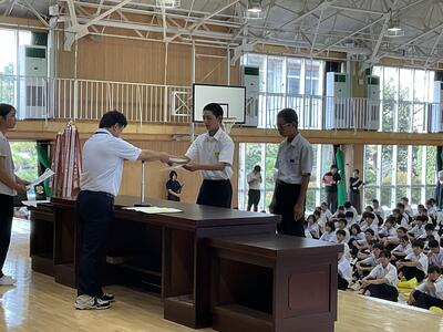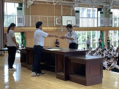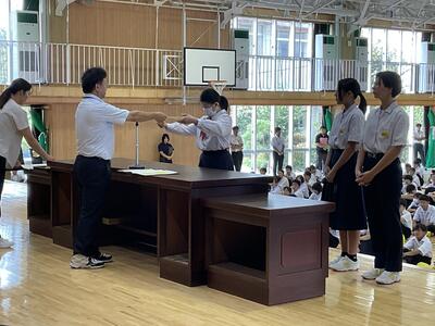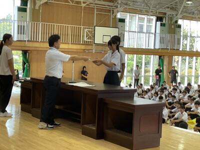 県総体など、夏の生徒の活躍がたたえられました。