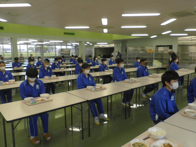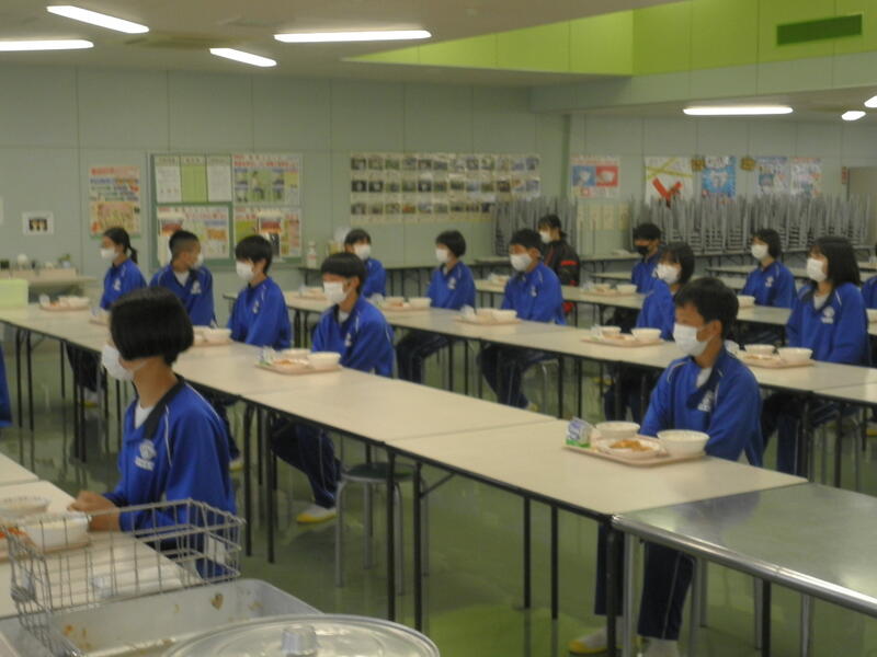 と言っても、全面再開ではなく、1学期は2年生、2学期は3年生、3学期は1年生が、1学級ずつ2週間交替で実施していきます。本日は、2年1組が初めてランチルームで給食を食べました。コロナウイルス感染対策で、距離をとって全員同じ方向を向いて食べました。それでも、教室とは違う雰囲気でおいしい給食になったようです。