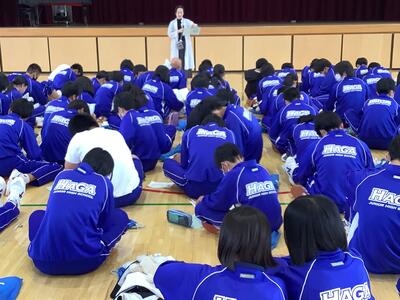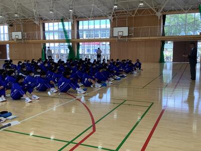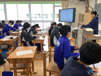 1&2組 体育 雨のため保健の授業 傷害について学習しています。