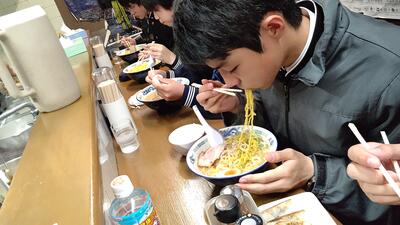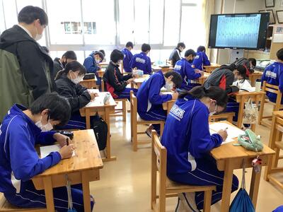 1時間目のテストが終了。2時間目のテストに向け短い時間を活用して最後の確認をしています。