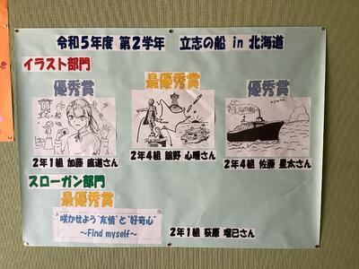 立志の船 しおりに使うイラストやスローガンを募集し、実行委員で選考しました。