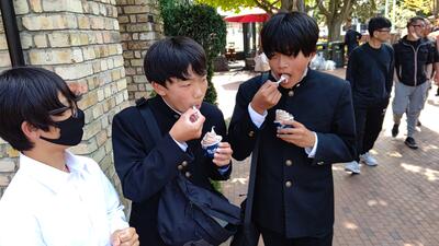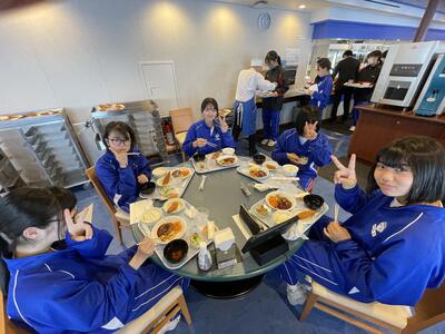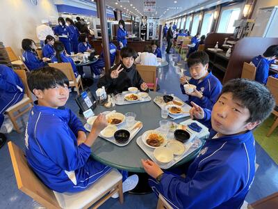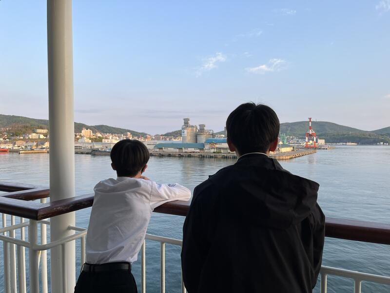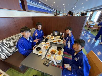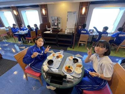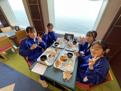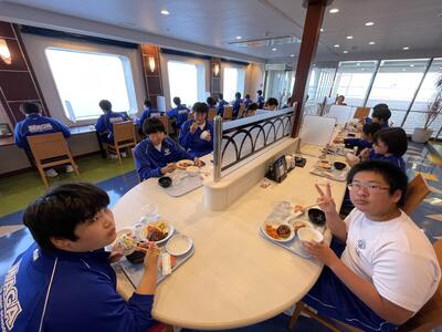 穏やかな波、明るい日差し、天候に恵まれました。フェリーの上で、立志式を行うことができました。
