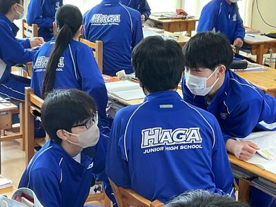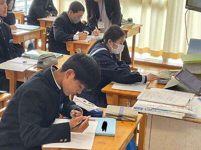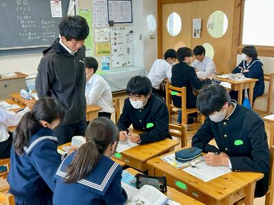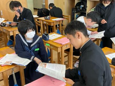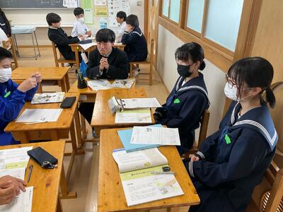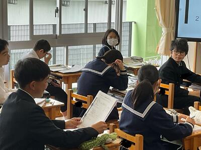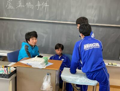 恐慌について発表しています。振り返り見守る生徒の視線が優しい。