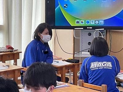 こちらのクラスは体育です。モニターで画像を見せてわかりやすい授業をしています。
