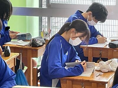 しかし周囲の雰囲気とは関係なく調べごとをしている生徒もいます。素晴らしい集中力です。