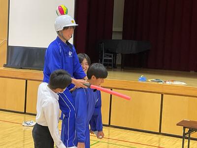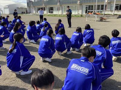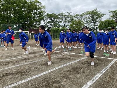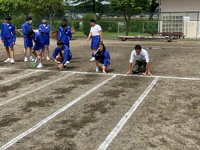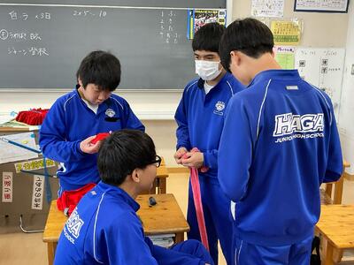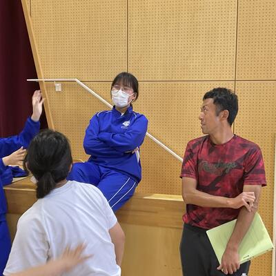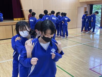 まずは気合が入る準備体操です。体育の先生の説明が迫力があります。