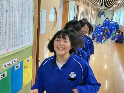 体育の時間です。苦しいはずのシャトルランをステキな笑顔で走っています。運動が得意で、走ることが楽しいのでしょう。素晴らしいです。