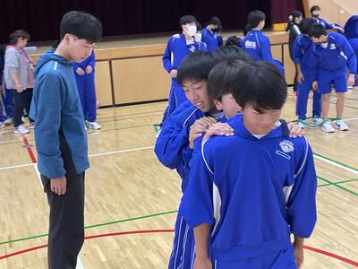 ゴール付近の様子です。先生の檄が飛びます。いつでも気合いが入っている先生です。