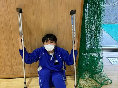立ち幅跳びのマットで擦れてしまったそうです。でも「パワー!」で大丈夫です。