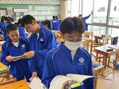 こちらは英語の授業です。お馴染みのペア活動です。音読練習です。